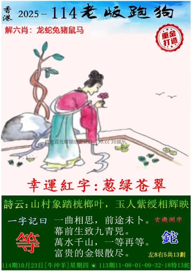 001-153期【曾夫人天机诗】 001-153期【港彩葡京赌侠诗】